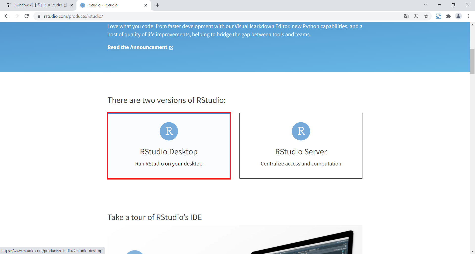 ㅇ 스크롤 조금 내려보면 찾을 수 있는 RStudio Desktop 클릭