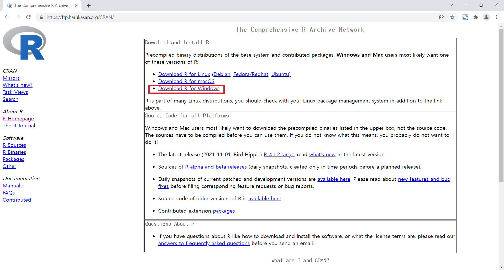 ㅇ Download > CRAN 클릭