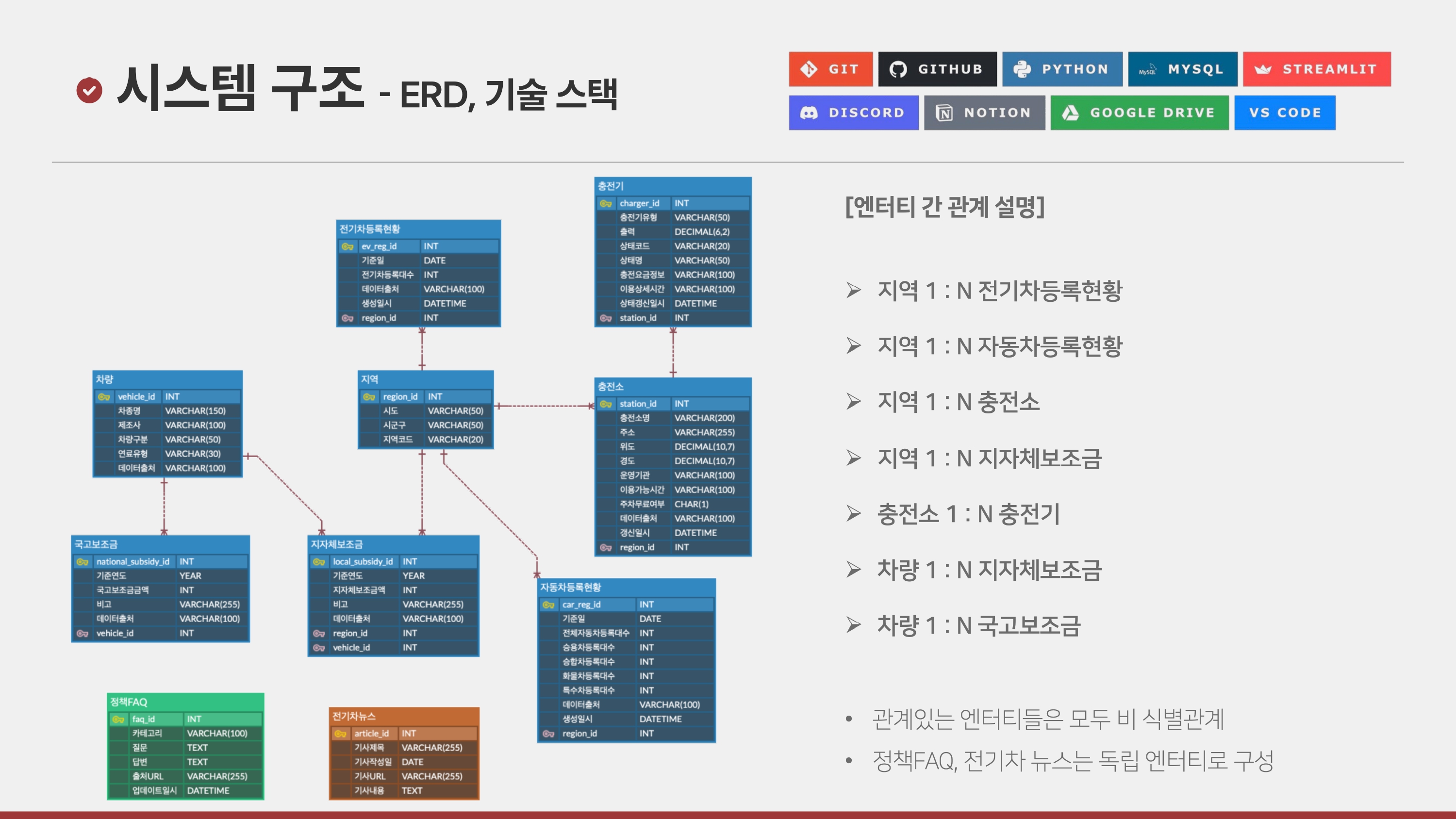 나는 주 담당역할로는 프로젝트 구조/DB 설계(ERD 작성), MySQL 작성 및 연결을 위한 Python 백엔드 코드 작성을 맡았고, 첫날 주제를 정하는 날을 제외하면 7일이 짧다고 느껴져서 처음부터 조금 organize 하려고 하다보니 얼떨결에 팀장이 되었다.