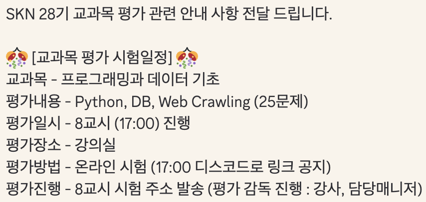 사전 공지 된 후, Web Crawling 까지 배운 날에 GPT를 사용해서 출제하고 정제하여 뽑은 핵심 30문제를 디스코드에 공유한 바 있다.