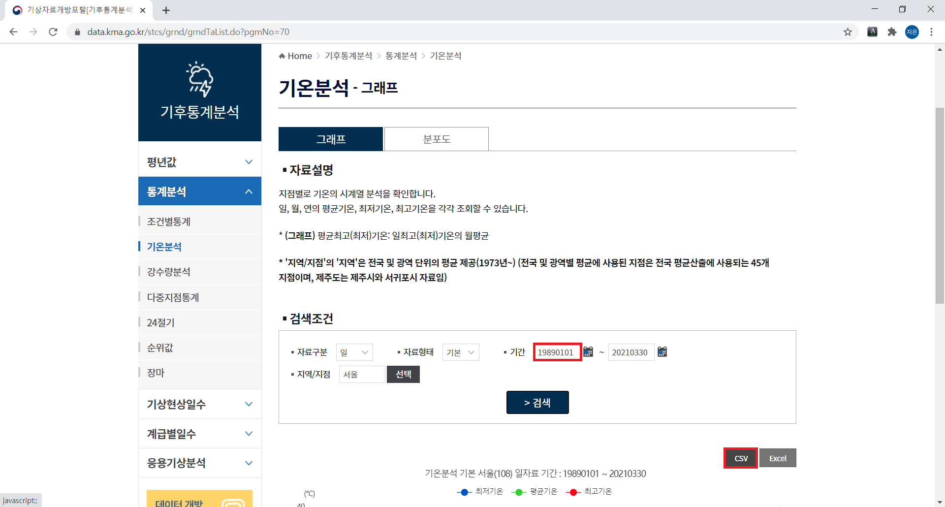 : 기상자료개방포털 ( https://data.kma.go.kr/ ) > 기후통계분석 > 기온분석 > 날짜를 설정하고 .csv 로 다운로드