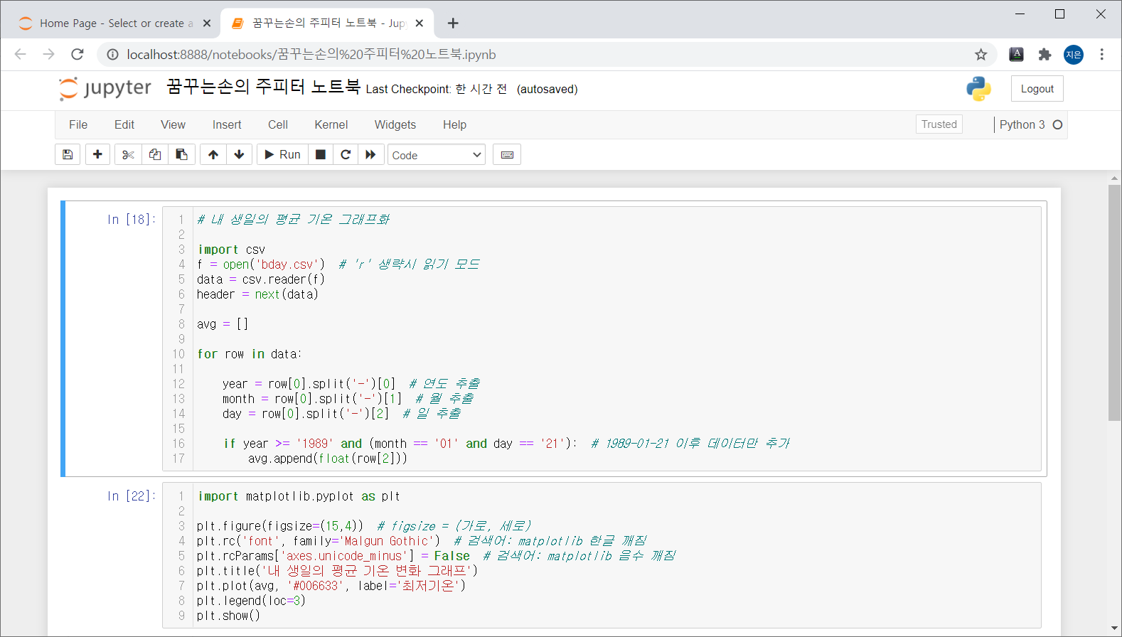 VSCode가 아니라 주피터 노트북을 사용하였다. 주피터 노트북이 무엇인지, 실행 방법이 궁금하다면, 다음 링크를 참고하자.
