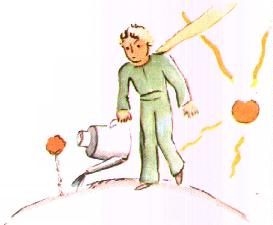 그래서 몹시 당황한 어린 왕자는 신선한 물이 담긴 물뿌리개를 찾아 그 꽃의 시중을 들어 주었다.